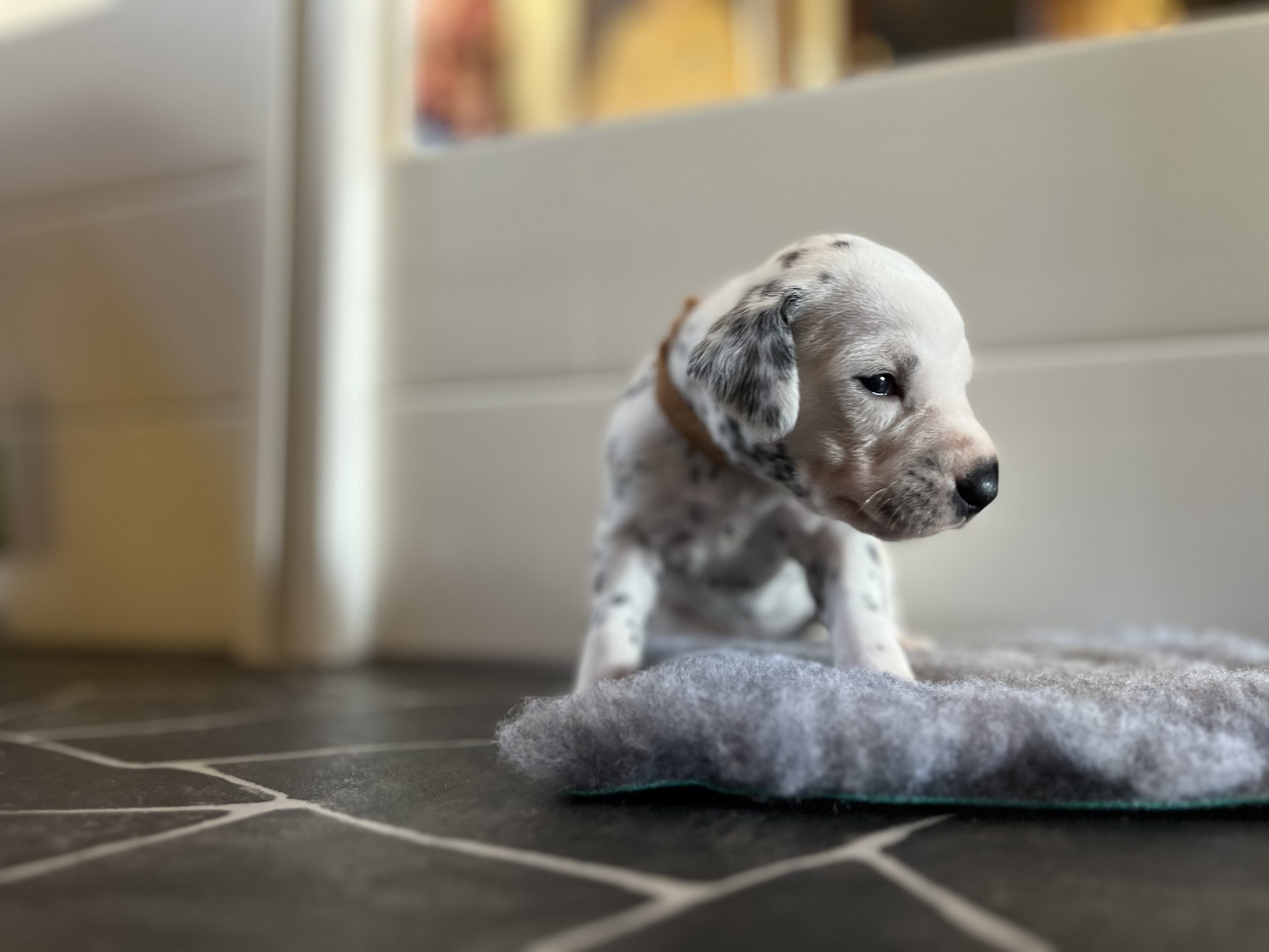 Maple (Dalstorm Incan Promise) is CLEAR with no evidence of the HUU mutation, which means that we expect all of her puppies to be CARRIERS and show no sign of the disease. All our puppies will have a DNA test which will confirm their HUU status.